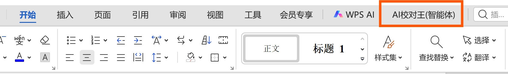 以WPS为例,若菜单列表显示「AI校对王(智能体)」,则表示安装成功。