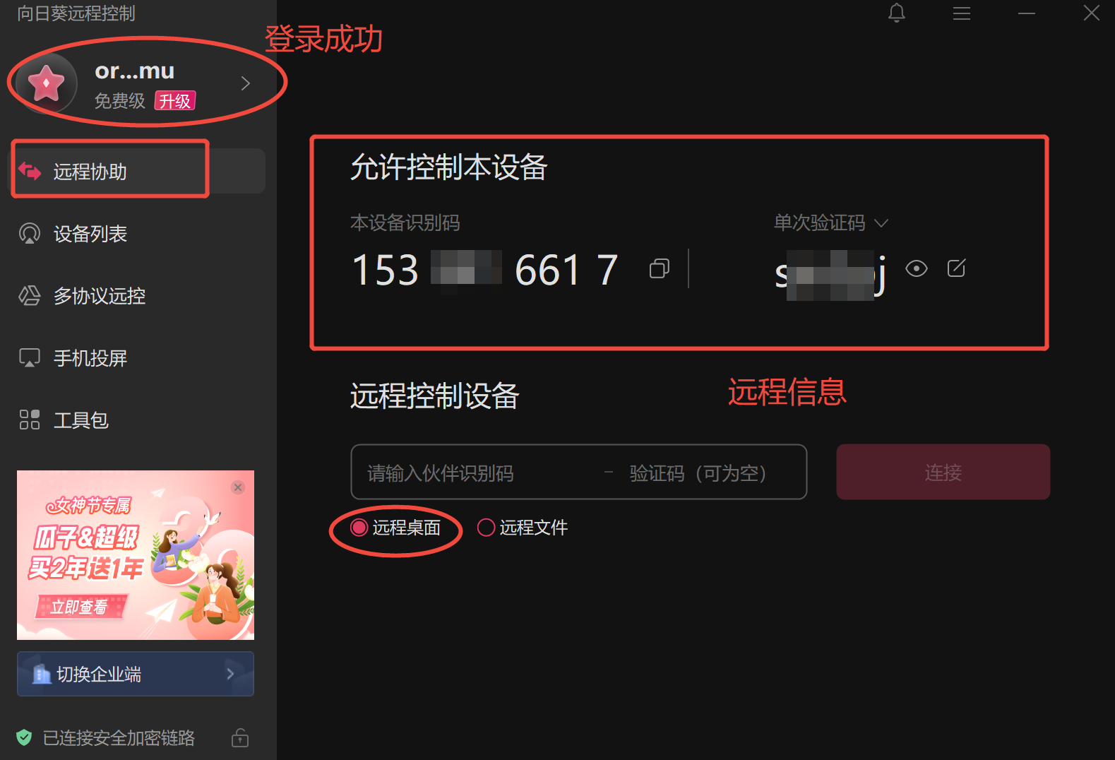 双击安装包——「立即安装向日葵远程控制」——「立即进入」